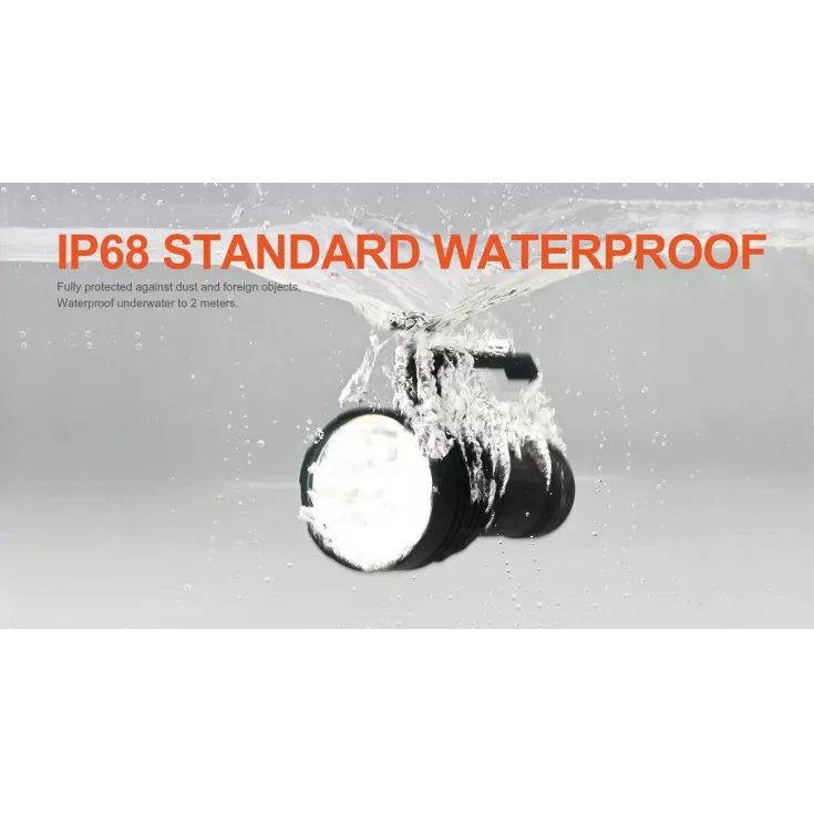 Maximum beam distance 1150 meters, waterproof to IP68 and resistant to impacts up to 2 meters.