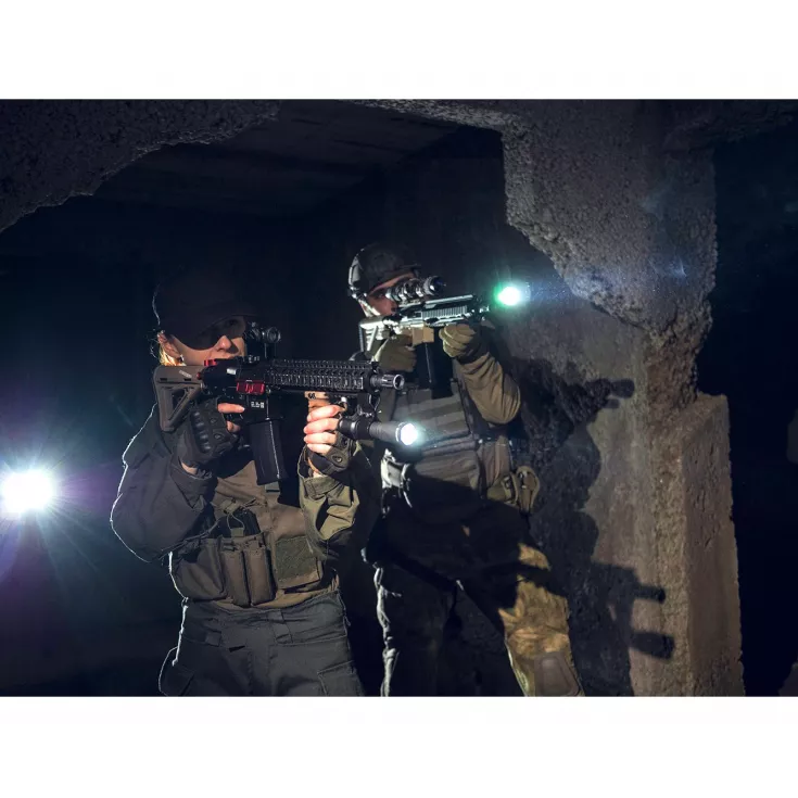 - Tactical mode: 4 brightness levels, fast switching between outputs and instant access to strobe
