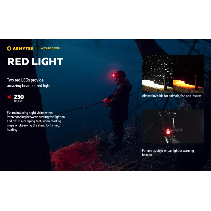 The Armytek Wizard C2 WR is a multi-purpose headlamp offering both white and red outputs. The white mode has a maximum output of 1100 lumens and 230 lumens from the red LEDs. The light is powered by an 18650 battery (included) which is rechargeable by magnetically attaching the included charging cable to the base of the torch.