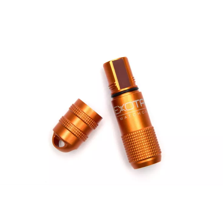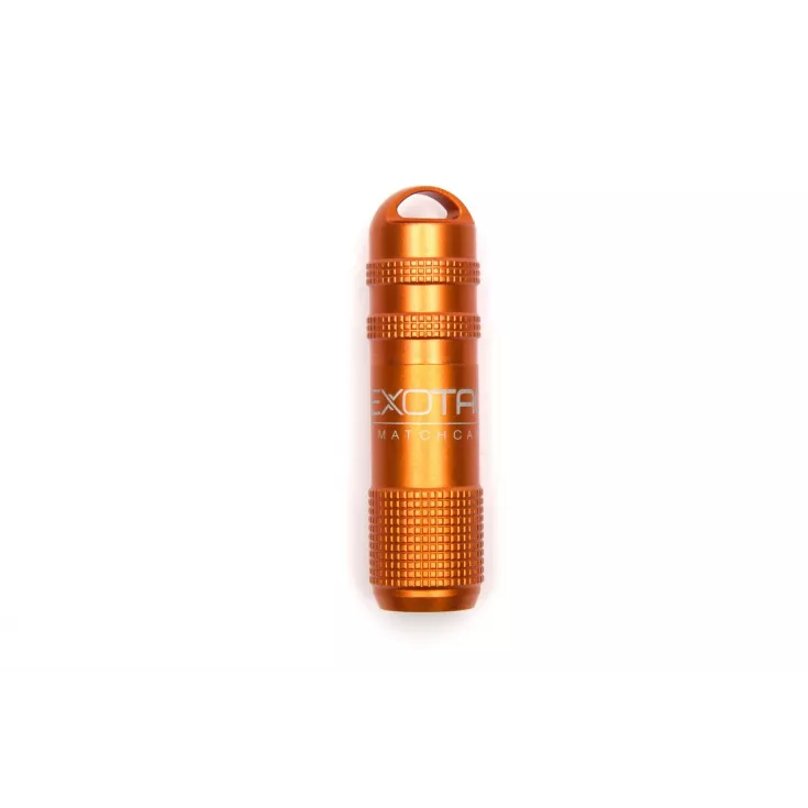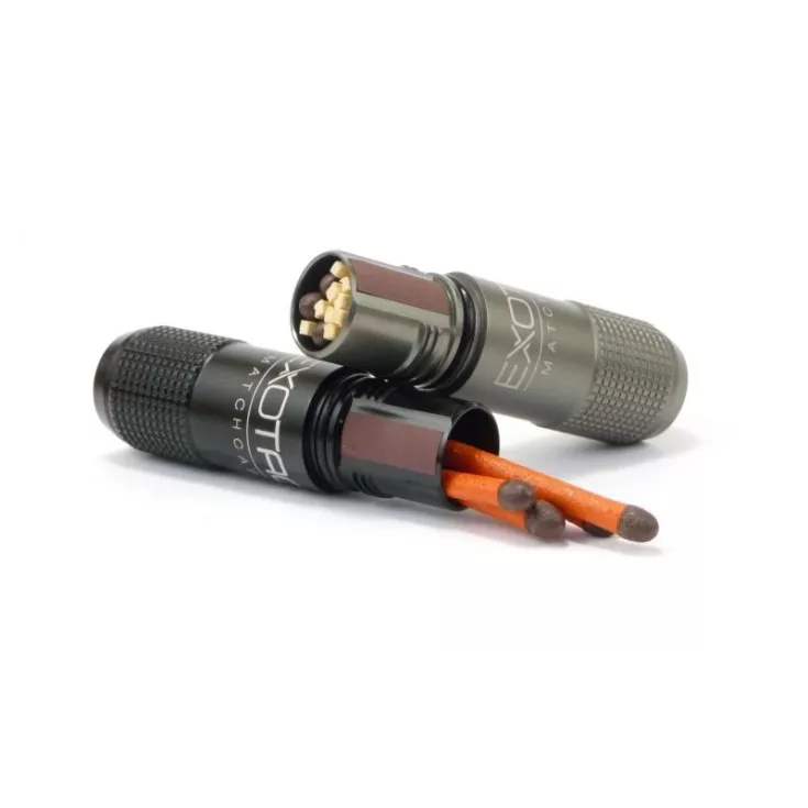 The Exotac MatchCap is a useful, lightweight canister that will carry and store your matches, from standard kitchen size to extended length stormproof matches. The MatchCap can hold up to 20 kitchen matches or 12 stormproof matches. The case features a phosphorus striker which allows for the use of safety or strike-anywhere matches.