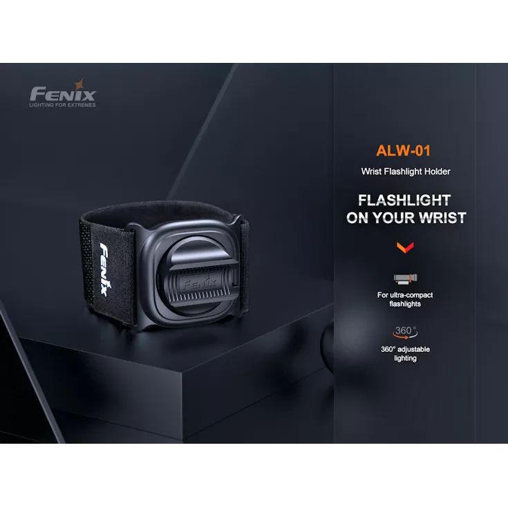 The Fenix ALW-01 wrist flashlight holder has a 360 degree rotation, allowing you to position the light where needed whilst staying hands-free.