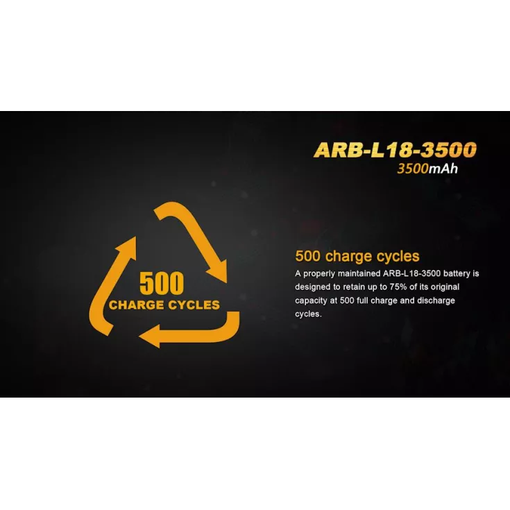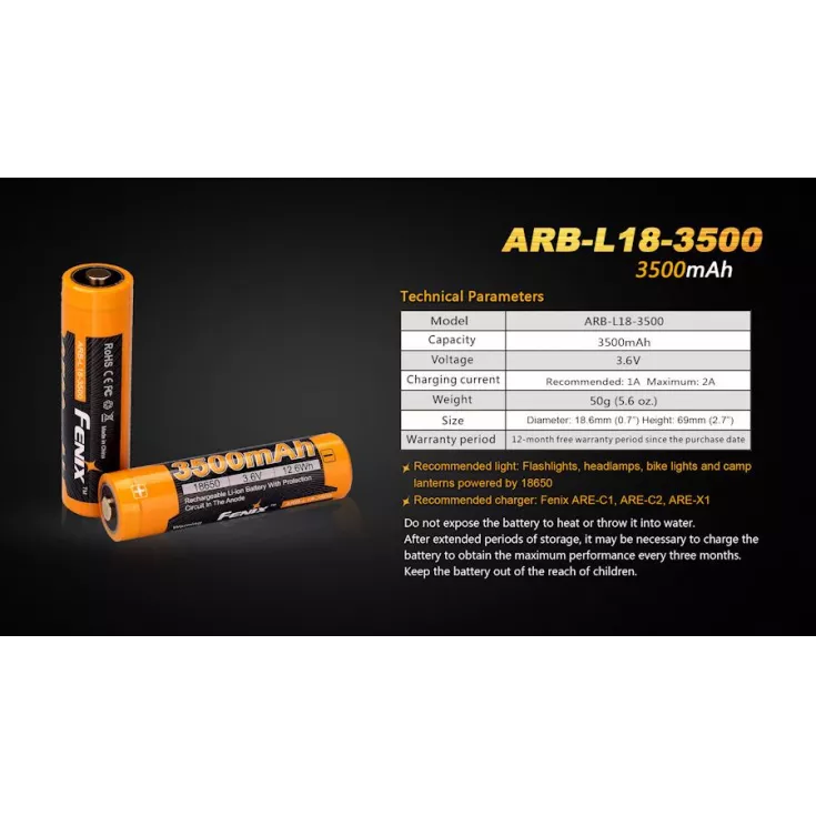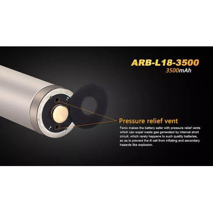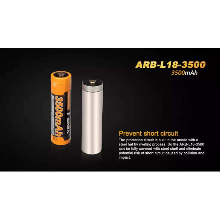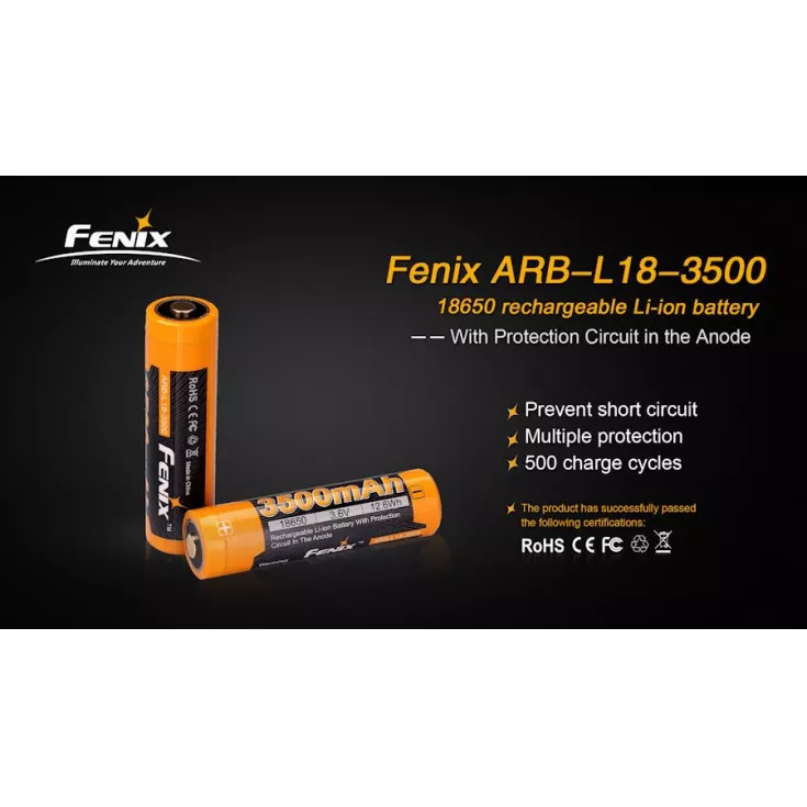 The Fenix ARB-L18-3500 Li-ion battery is a 3500mAh high capacity cell designed for high drain devices such as high intensity flashlights and headlamps, including the Fenix range.