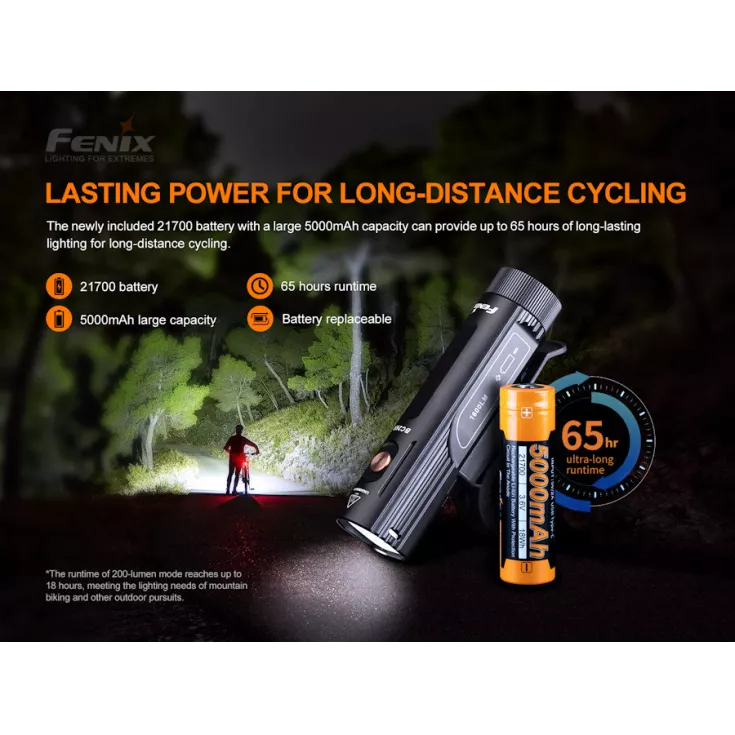 The Fenix BC26R bike light has an output of 1600 lumens powered by a Fenix ARB-L21-5000 battery (included).