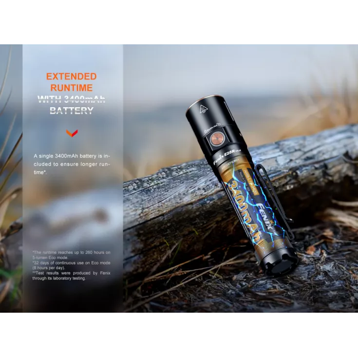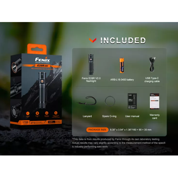 Included: Fenix ARB-L18 3400 18650 battery, USB-C charging cable, lanyard, spare o-ring.