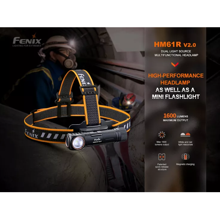 The Fenix HM61R V2.0 is the latest version of the popular rechargeable head lamp that can also be used as a handheld light or attached to clothing with the included pocket clip. A magnetic tail design also allows for hands free use when attached to ferromagnetic metal surfaces. For use as a head torch Fenix include a new snap-in head band system and a lightweight headband with reflective strips for better visibility to other road users.