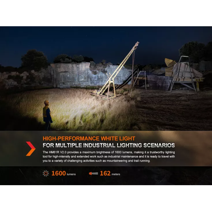 Fenix HM61R Includes: ARB-L18-3400 18650 li-ion battery, magnetic USB charging cable, headband, pocket clip and spare o-ring.