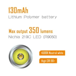 Low: 50 lumens – 35 hours runtime – 28 meters