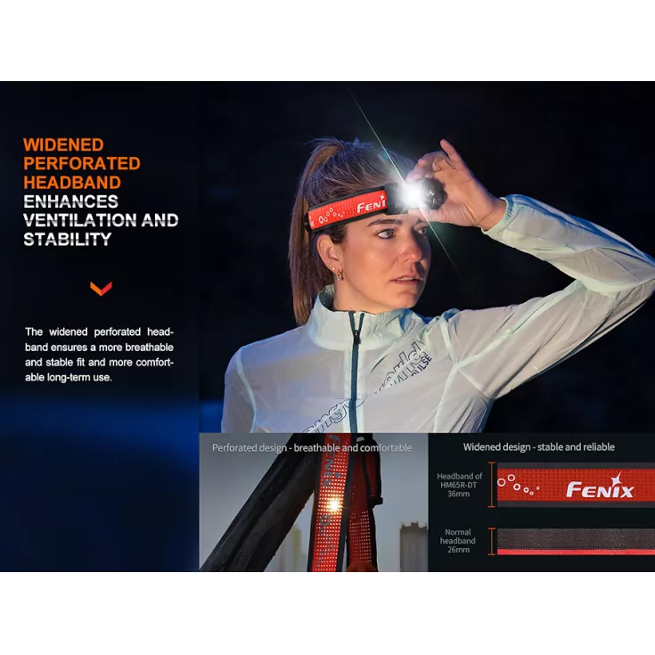 With comfort and durability being paramount, the Fenix headtorch is made with a lightweight magnesium alloy material, providing less weight and longevity. The widened perforated headband ensures a more breathable, stable fit with a comfortable long-term use. It features a new sport fit system providing convenient and flexible adjustment of the band with a single hand while on the move.