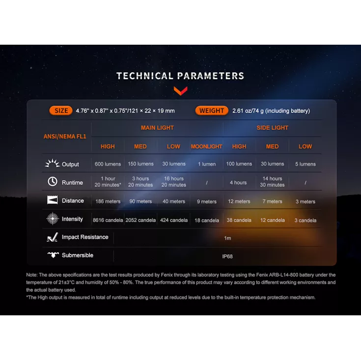Included: 1 x LD12R, 1 x ARB-L 14-800 battery, Lanyard, Spare o-ring