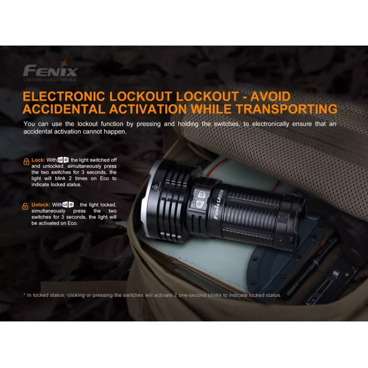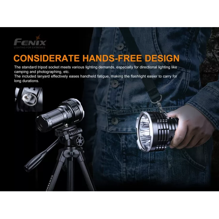 The Fenix LR50R is a high power long range searchlight with a maximum output of 12000 lumens and a range of up to 950 meters.