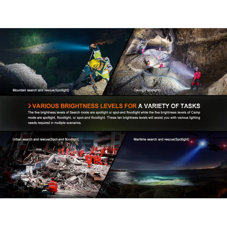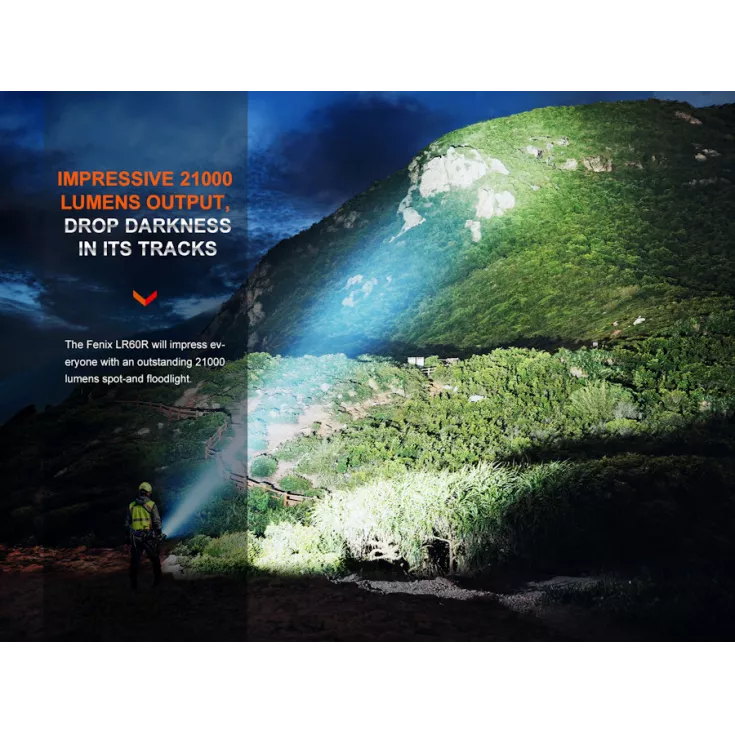 The Fenix LR60R is a professional search light designed specifically to meet the needs of search and rescue even in the harshest of conditions. The torch offers an incredible maximum output of 21000 lumens, powered by a customised Fenix battery pack that can be recharged in as little as 1.5 hours using the USB-C charging port.