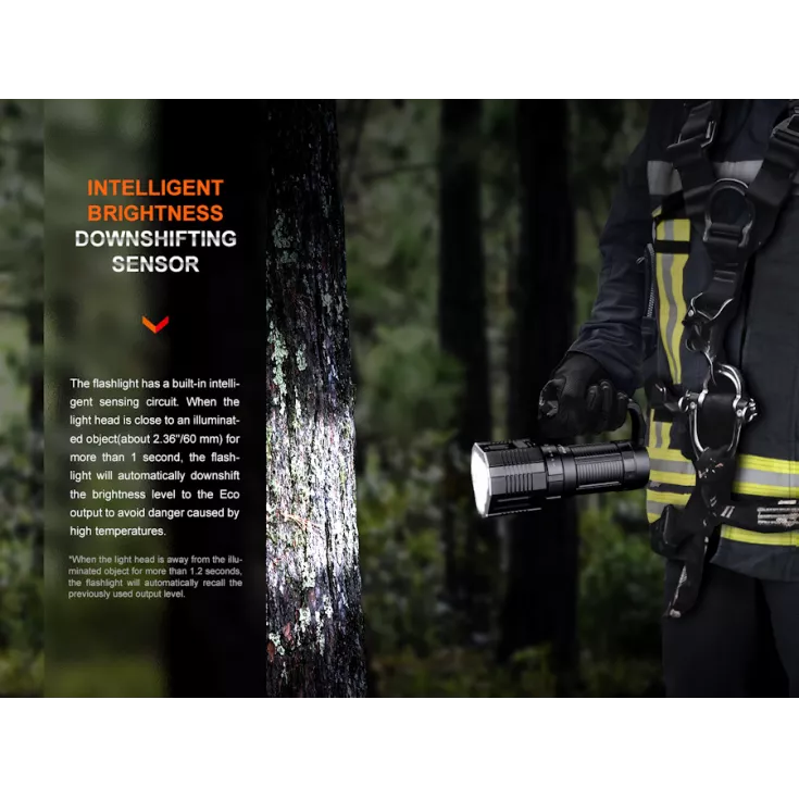 - Intelligent brightness downshift – prevents damage to torch and any surface within 60mm