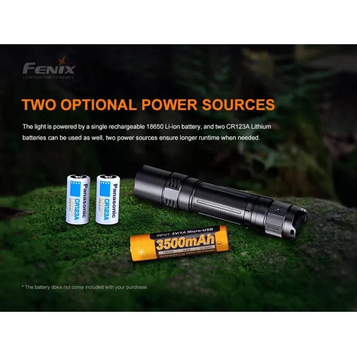 Powered by a single 18650 Li-ion rechargeable battery (available separately) or two CR123A primary cells the PD32 V2.0 has an impressive range of 395 meters, which is impressive from such a compact light.