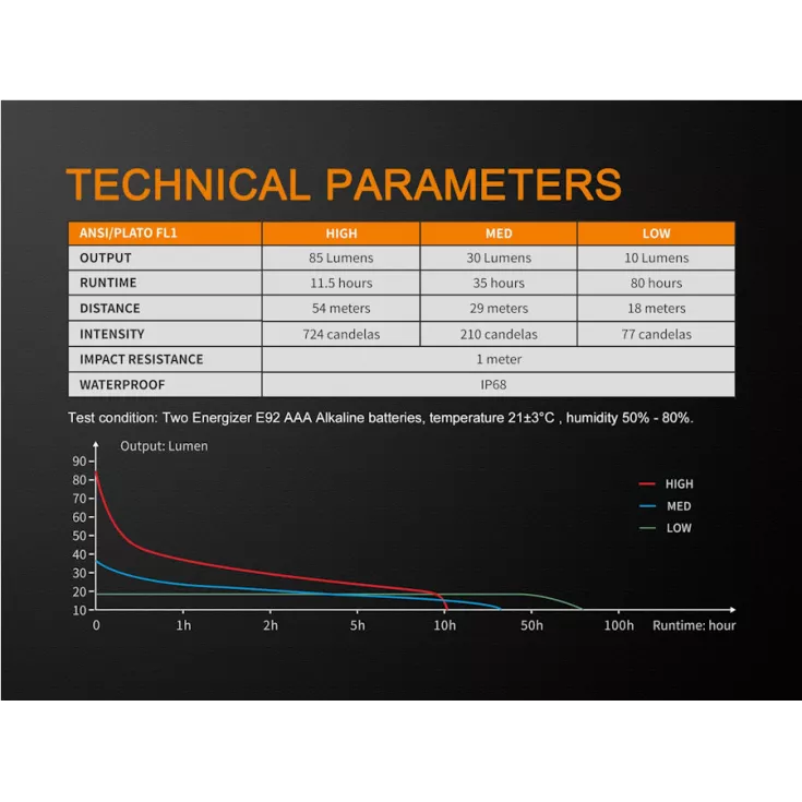 Operated by twisting the head, the WF05E offers three brightness levels ranging from 10 to 85 lumens.