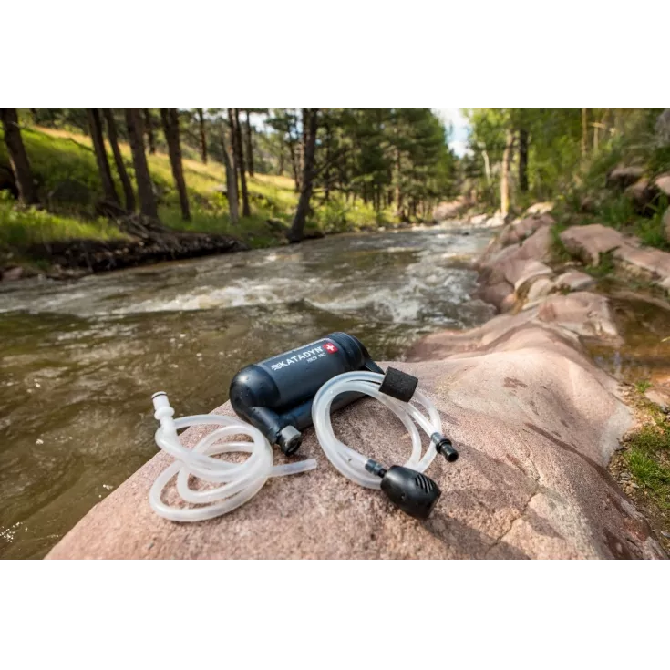 The Katadyn Hiker Pro Microfilter Water Filtration System is a lightweight hand-pump that filters out bacteria and protozoan cysts commonly found in fresh water sources to make it safer for drinking. It meets the U.S. Environmental Protection Agency’s microbiological water purifier standards for reduction of bacteria (99.9999% Klebsiella terrigena) and protozoan cysts (99.9% Giardia and Cryptosporidium). It is ideal for hiking, camping, or travelling in areas where treated water is unavailable.