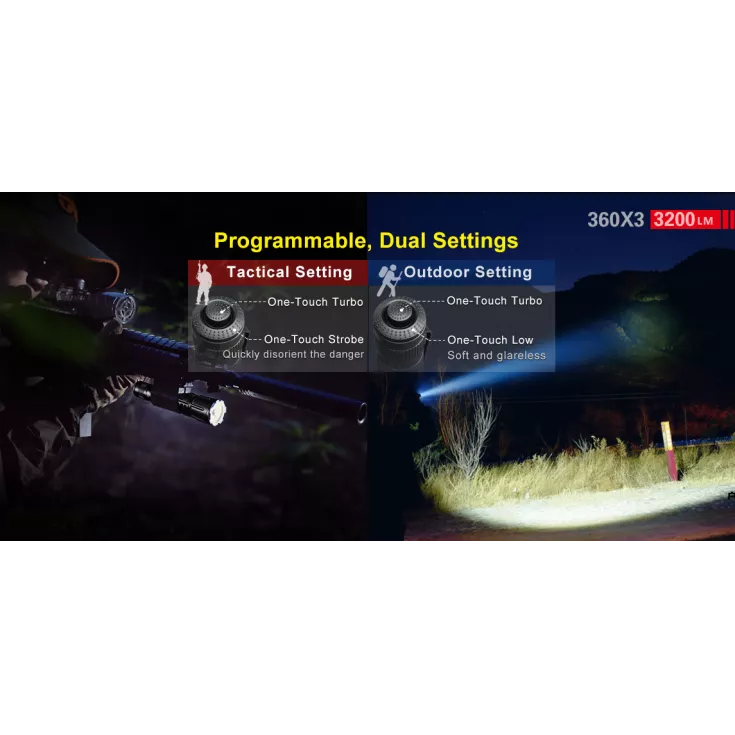 Outdoor Setting: Primary tail switch = Turbo / 360 tail switch = Low Brightness