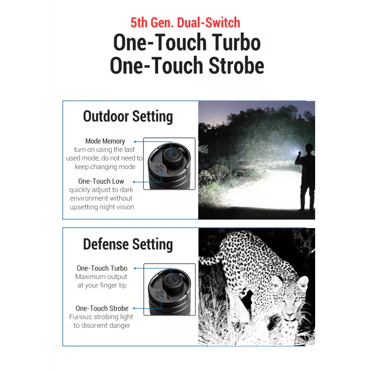Featuring a Cree XHP35 HI LED with a maximum output of 1600 lumens the Klarus E2 is operated via the fifth generation Klarus dual-switch with two modes: