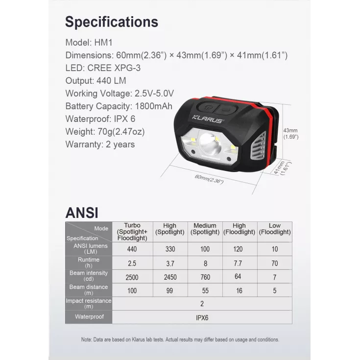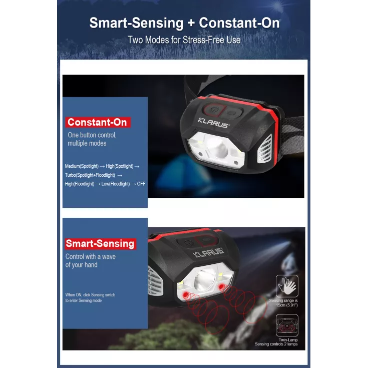 The Klarus headlamp has an adjustable angle between 0º and 60º to ensure the beam is positioned to best suit your needs.
