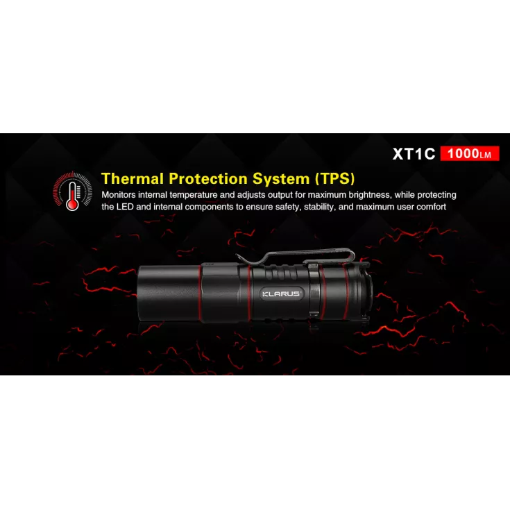 The Klarus XT1C compact torch has a maximum output of 1000 lumens from the Cree XP-L HD V6 LED and can be powered by 1 x RCR123 (16340) Li-ion or a CR123 single use battery. The light comes with a Klarus 16340 which has a micro USB port on the side of the battery, eliminating the requirement for a separate charger.