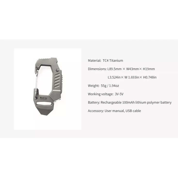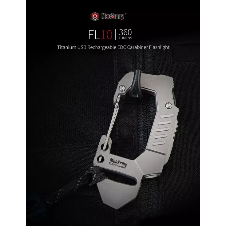 The MecArmy FL10 is an excellent multi-purpose carabiner clip that features a powerful torch amongst other useful tools. The light has a maximum output of 360 lumens from the Cree XP-G2 S4 LED and is powered by a built-in lithium polymer battery.