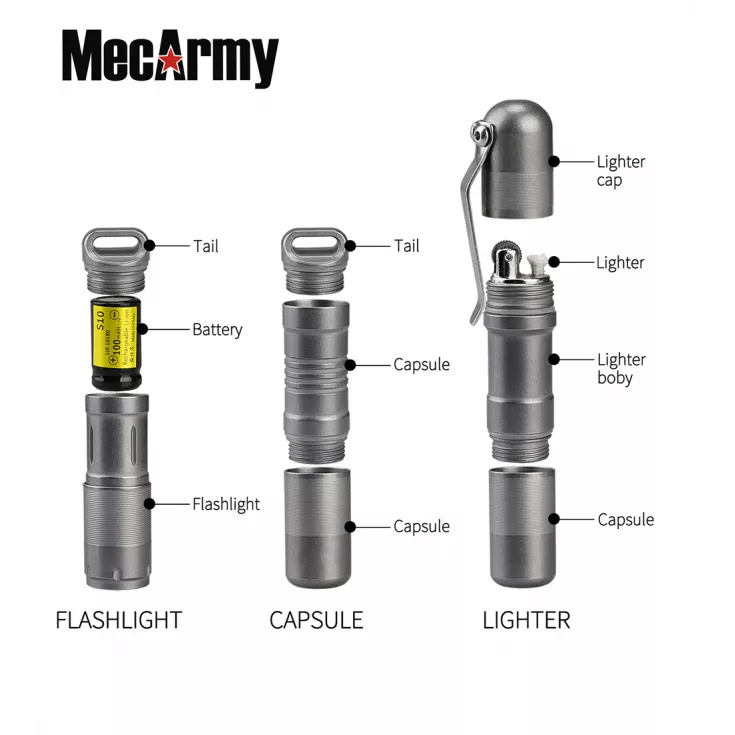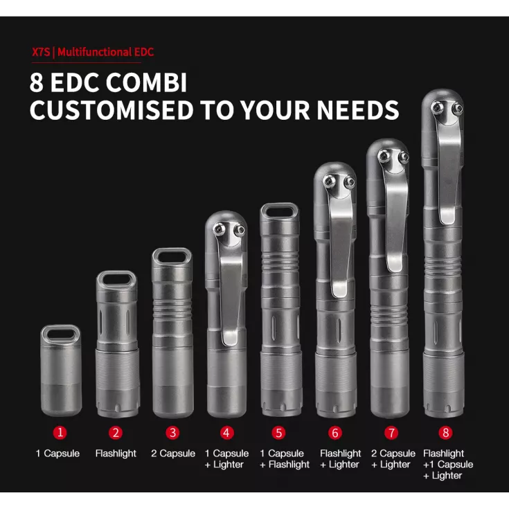 The MecArmy X7S is a multi-functional everyday kit, containing a flashlight, capsule and lighter which can be swapped, adjusted and changed to best suit your requirement.