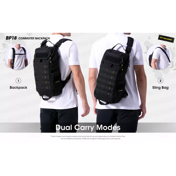 The BP18 features quick release shoulder straps, which allow it to be used as a backpack or sling bag, worn over a single shoulder.