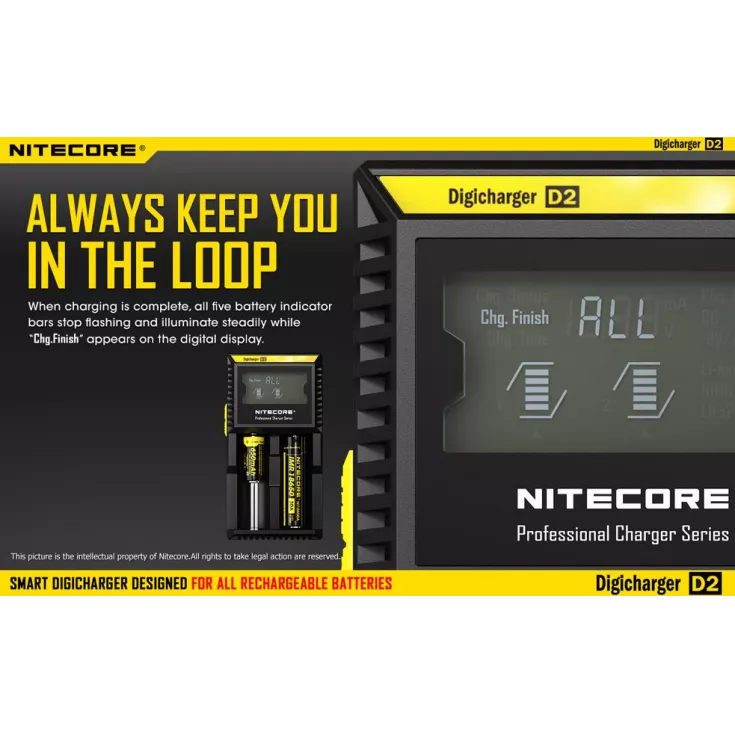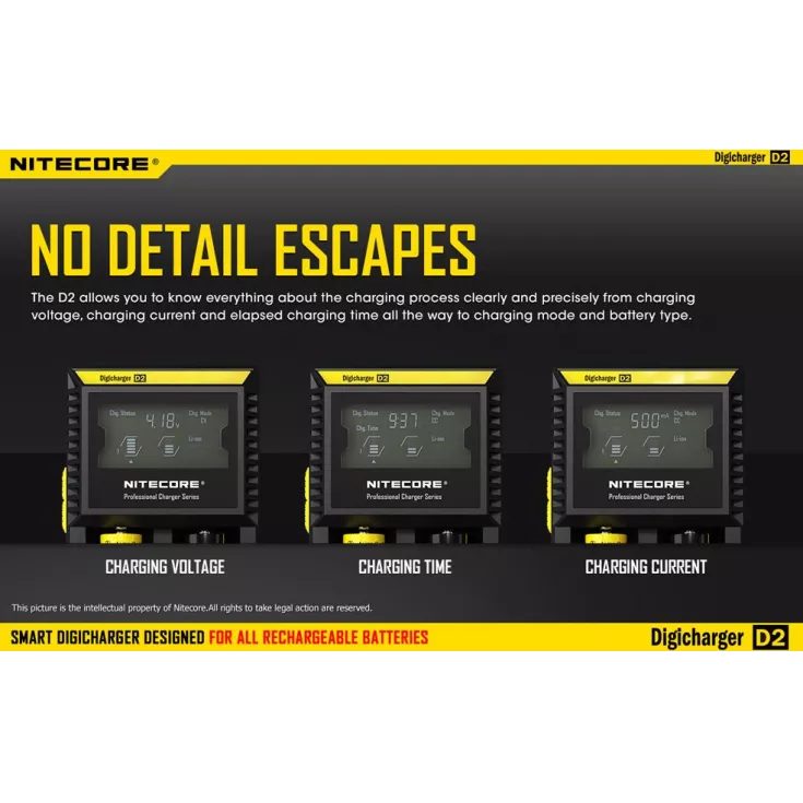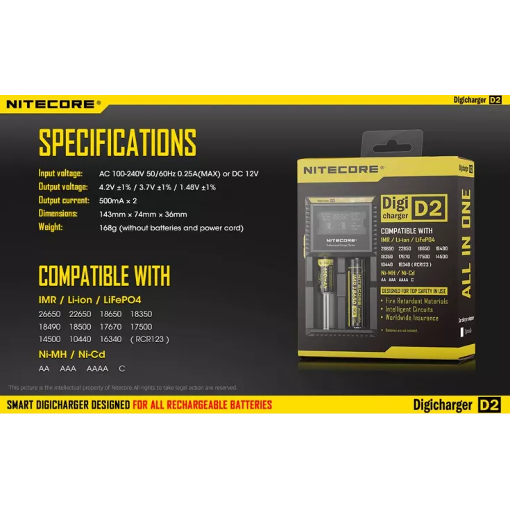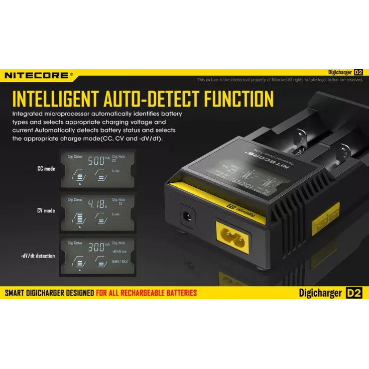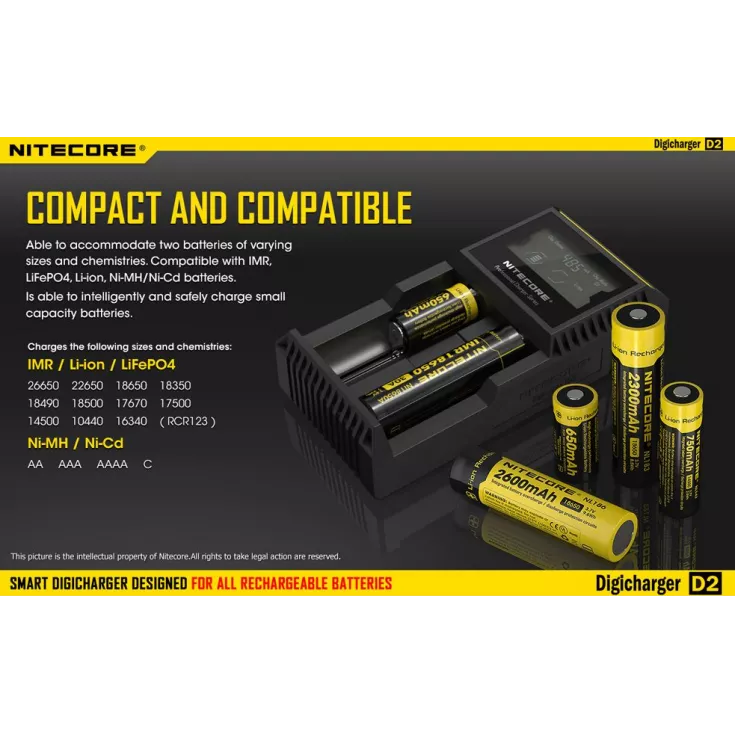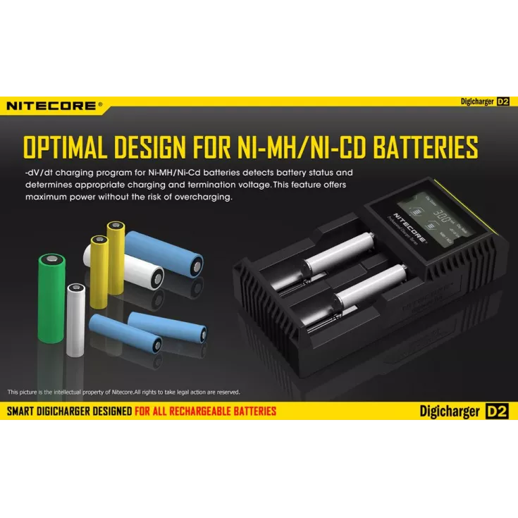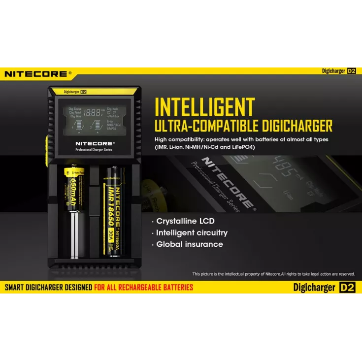 The Nitecore Digicharger D2 EU is a universal smart charger compatible with almost all cylindrical rechargeable batteries, eliminating the need to own multiple chargers.