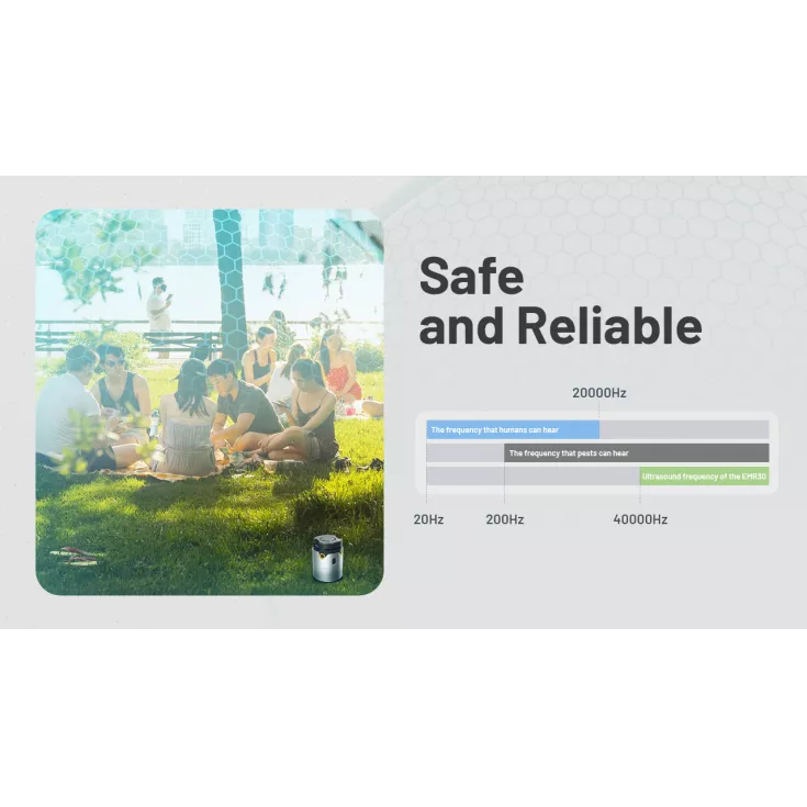 The device has 4 ultrasonic speakers with 40Hz ultrasound frequency which can be activated at the same time to repel other pests such as insects, mice, snakes and cockroaches.