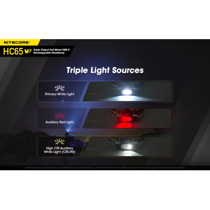 The new Nitecore HC65 V2 sees a complete redesign of this popular head torch while retaining triple light sources of primary white light, auxiliary red light and also a high CRi auxiliary warm white output that made the original version a best seller.