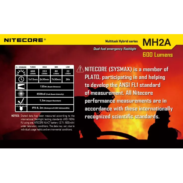 The Nitecore MH2A is a rechargeable flashlight that comes supplied with a Nitecore Li-ion rechargeable battery (NL1427) plus mico-usb charging lead.