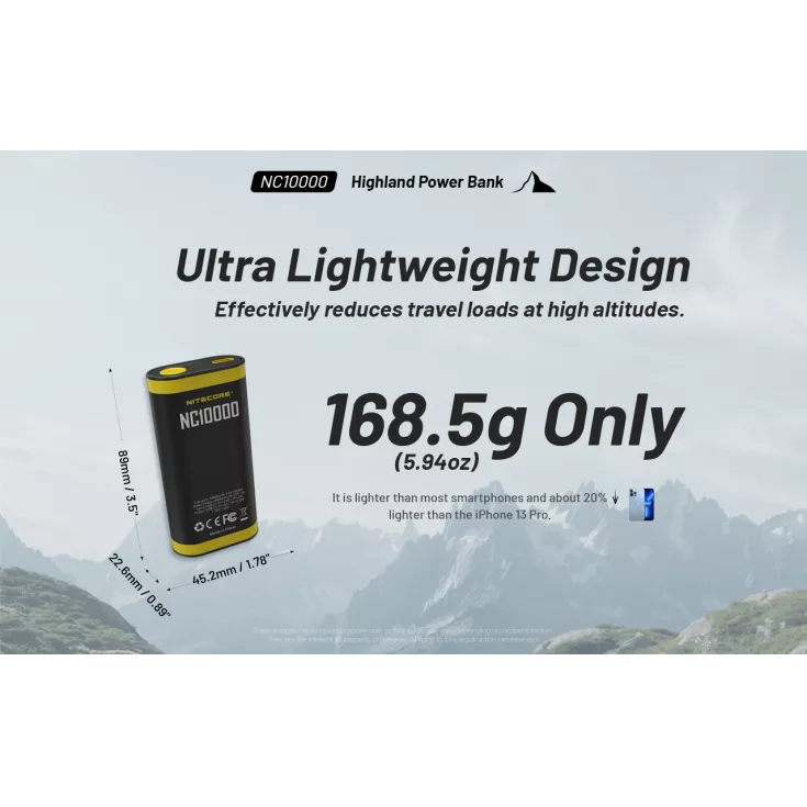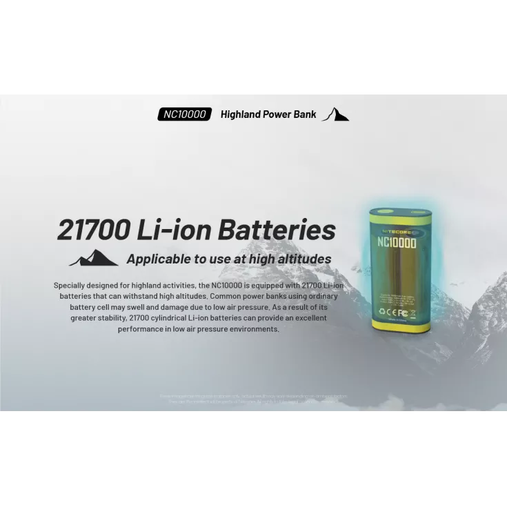 The Nitecore NC10000 power bank is run by 2 x 21700 li-ion batteries which are able to withstand higher altitudes and low air pressure environments. Its compact, ultra lightweight design and built in back-up light makes it perfect for those who enjoy more remote excursions. It has a capacity of 10,000 mAh and offers QC/PD compatibility.