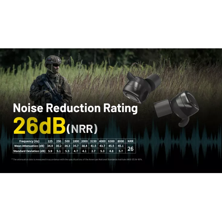 The NE20 comes with a tailor-made charging case specially designed for tactical applications with multiple carry options making them a perfect everyday carry for tactical use such as shooting training . The buds can run for 8 hours on a single charge and a runtime reaching 32 hours when using the USB-C recharging case. The earbuds take just one hour to fully charge.
