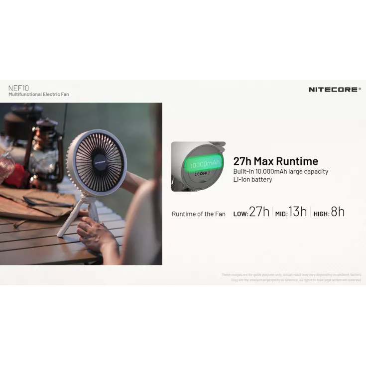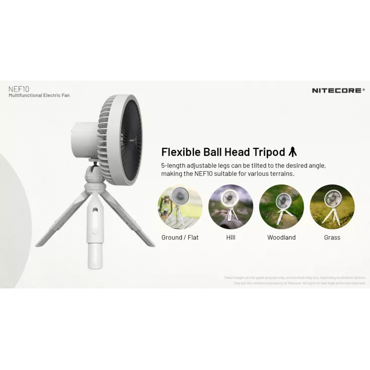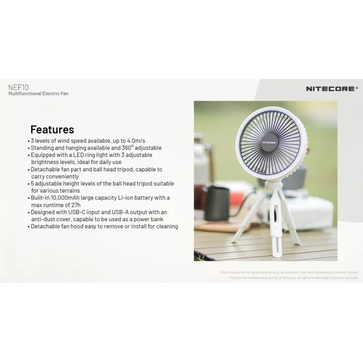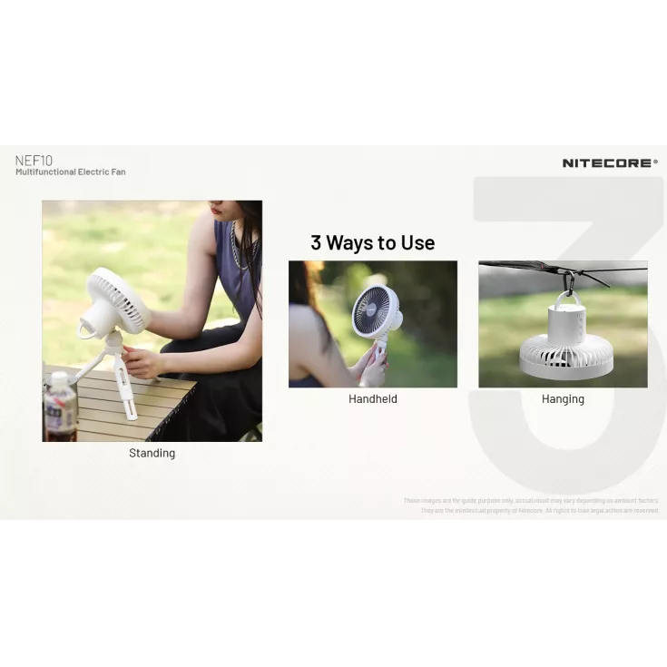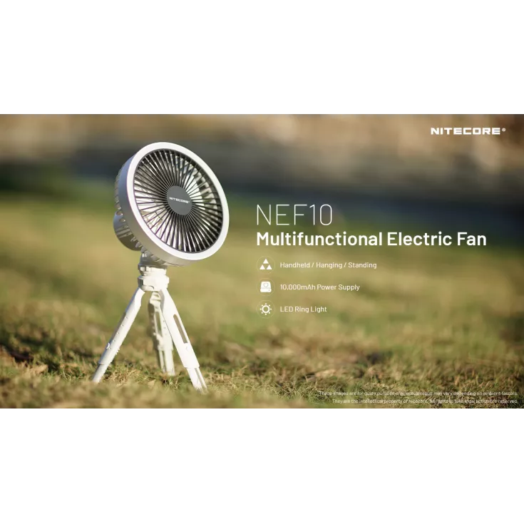 The Nitecore NEF10 is a multifunctional electric fan offering 3 levels of wind speed and can be used standing, handheld or hanging.