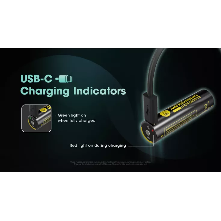 The Nitecore NL1836R is a USB-C rechargeable 18650 Li-ion battery.  With its own built in USB-C port, the NL1836R battery can be charged via a USB-C charging cable or with an external charger.