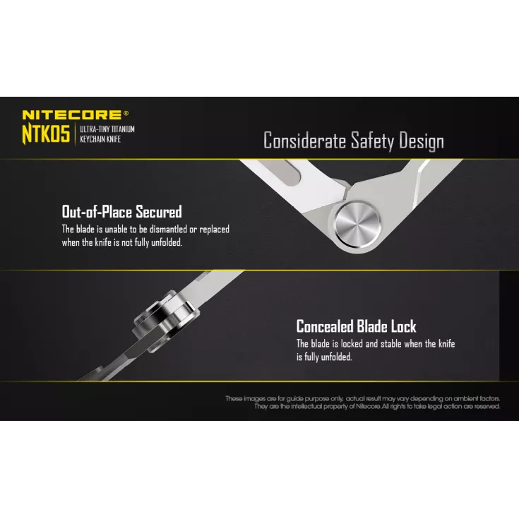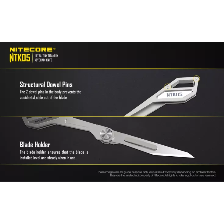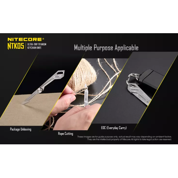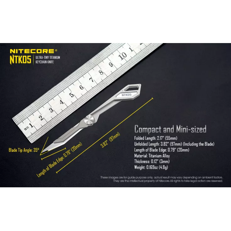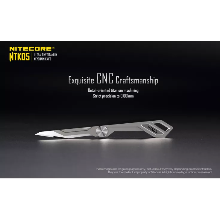 The Nitecore NTK05 follows the popularity of the NTK10, offering the same high quality and strength, but at a fraction of the size. The NTK05 is the ideal keyring knife and can complete a range of tasks, from opening boxes to sharpening pencils. The knife is exquisitely CNC machined with strict precision to 0.001mm and made from aero-grade TC4 titanium alloy.