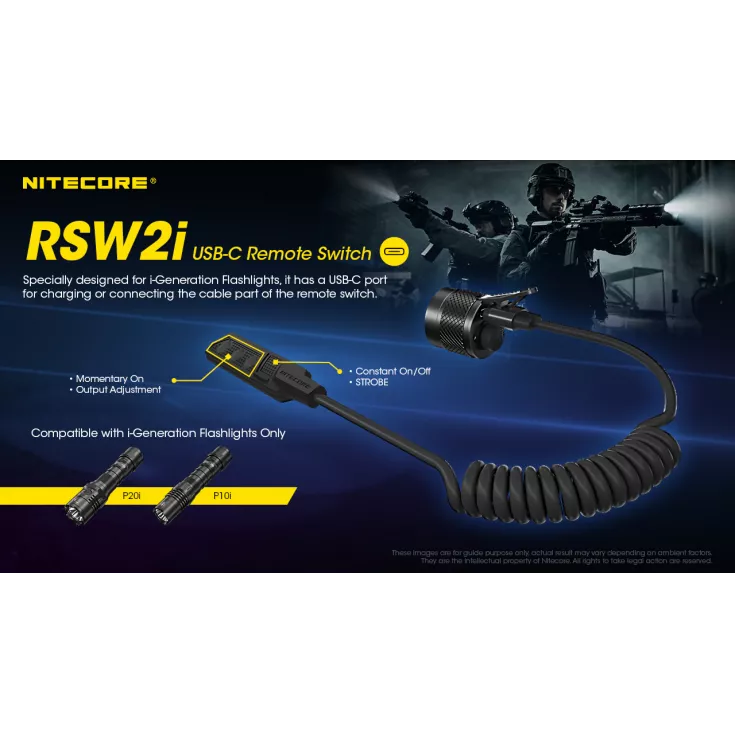The RSW2i is compatible with the Nitecore P10i, P20i, P30i, P10iX, P20iX, P23i and SRT7i.