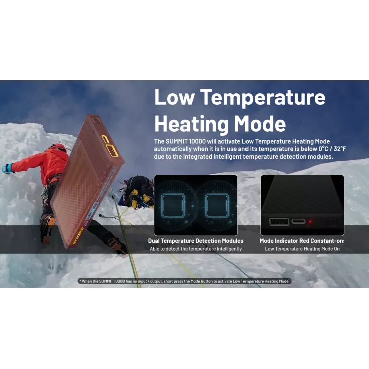 The Nitecore Summit 10000 Power bank has been designed with an innovative heating mode, enabling the power bank to provide a stable output in low temperature environments, as low as -40°C. Equipped with the PI heating system, the power bank has high efficiency and high speed heating performance to ensure the battery can work at an appropriate temperature for reducing the loss of power.