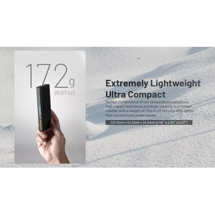 The carbon fiber construction also guarantees the thermal insulation in low temperature environments. The power bank is perfect for mountaineering, polar exploration, skiing and other snow sports.