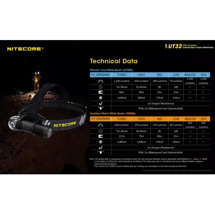The Nitecore UT32 is the first coaxial dual output light to hit the market. Designed primarily for trail running, the two different LED / reflector setups allow the user to select the most suitable for the conditions faced: