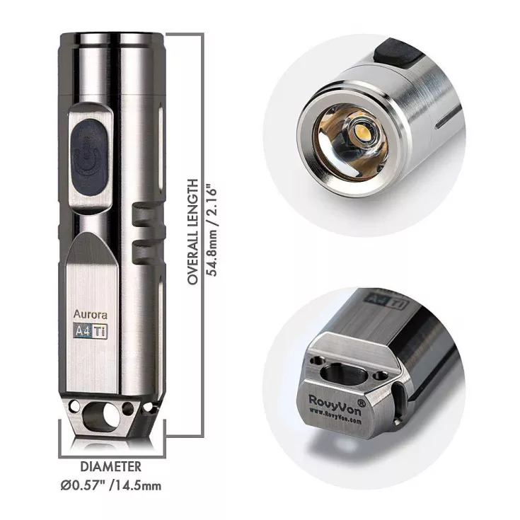 Made from TC4 titanium, the A4 is a sleek and smooth light that would make a great addition to your keyring, bag zipper or prized torch collection!